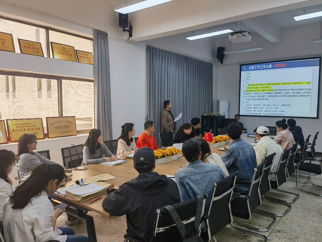 会上,副院长卜繁波对照评估指标体系,部署专项检查任务,明确以“2022-2024级本科人才培养方案执行情况”“近三年课程试卷、实习实践材料”为重点,按照“专业自查—交叉互审—集中修订”三阶段推进整改。成立专项小组,重点核查培养方案与行业需求契合度、课程目标达成度及教学材料规范性,累计发现课程矩阵逻辑偏差、试卷分析雷同等6类共性问题。